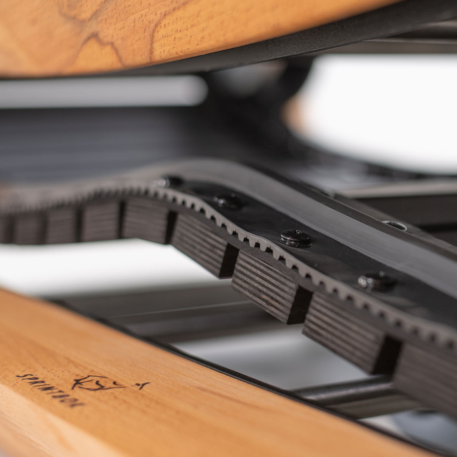 The curved shape of the slat belt provides the manual treadmill with further advantages for a natural running experience. Depending on the body’s center of gravity and position on the belt, users can vary running rhythm at any time. Compared to conventional treadmills, the Sprintbok´s curved manual treadmill technology delivers a more intense and effective running workout with overall higher strength input.