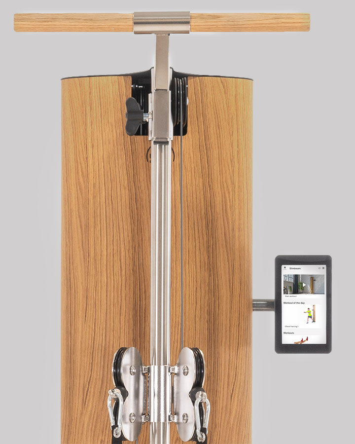 The SlimBeam is a professional, multi-use cable station which will win you over with its sophisticated design and high level of functionality. Its main feature is the butterfly function, allowing you to train on one or both sides. It can be swiveled and set at any height. The rubberized weight plates prevent any unpleasant clanking noises during your workout. The sleek and straightforward use of forms, along with its selection of high-quality wood, render the SlimBeam the appeal of an exquisite piece of furniture, which will fit into any home interior.