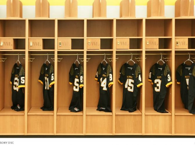Football lockers need to efficiently store a helmet, shoulder pads, pants and cleats. Alternately, baseball players typically cherish their own bats; and we have engineered a way to securely lock bats inside the locker. Legacy Lockers offers three standardized top and bottom configurations that can be mixed and matched according to your preferences; or we can customize the entire locker for you.