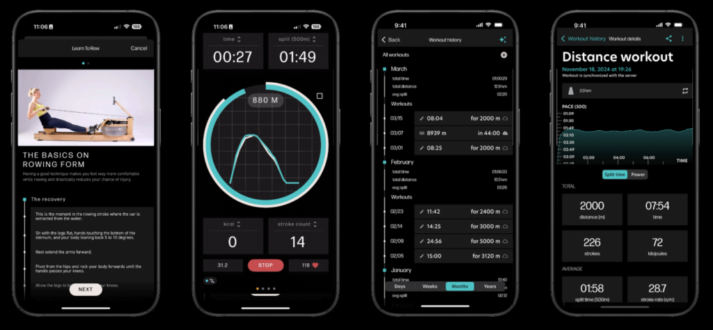 The WaterRower range is compatible with leading indoor rowing apps on iOS and Android. This includes the free WATERROWER Connect companion app and on-demand workout class content from CITYROW.