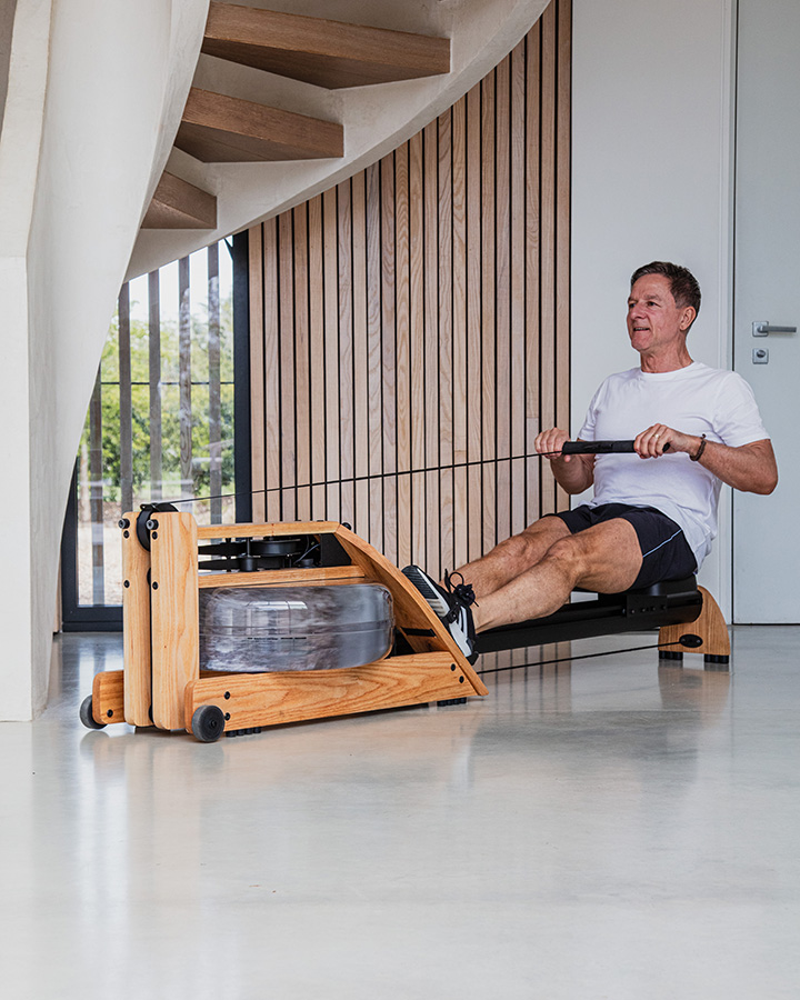 The WaterRower is designed to blend seamlessly into a considered interior setting. Available in different frame styles and materials, the WaterRower can stand on end for space-saving storage when not in use.